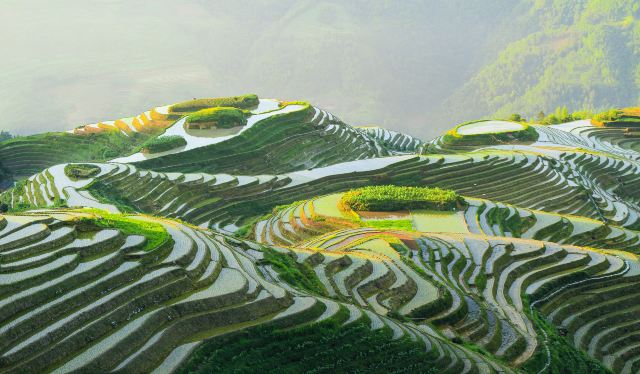 This is the image you've seen in every guidebook and travel poster. In flooded season (May-June), the pools reflect the sky. In harvest season (September-October), it's a golden mosaic.
