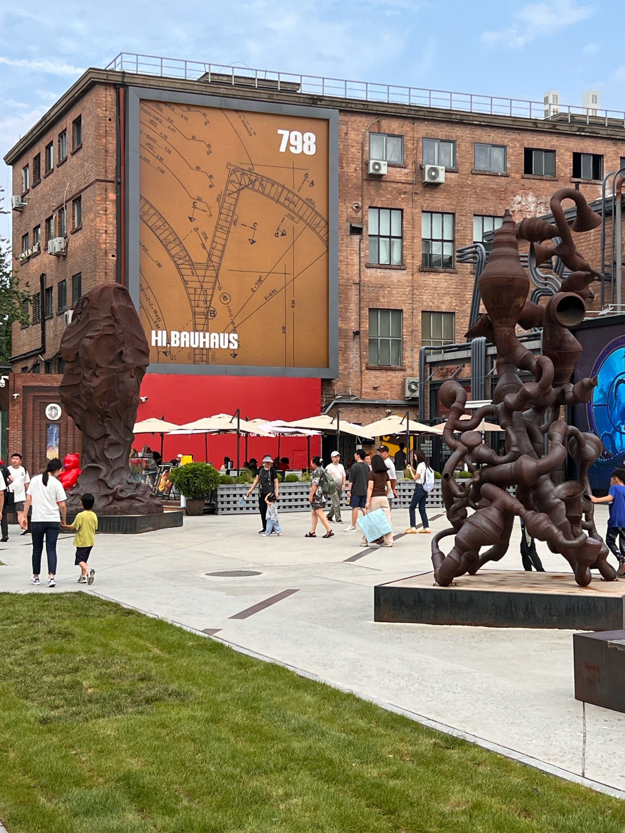 Walk the main 798 Art Road north for the big sculptures and commercial galleries