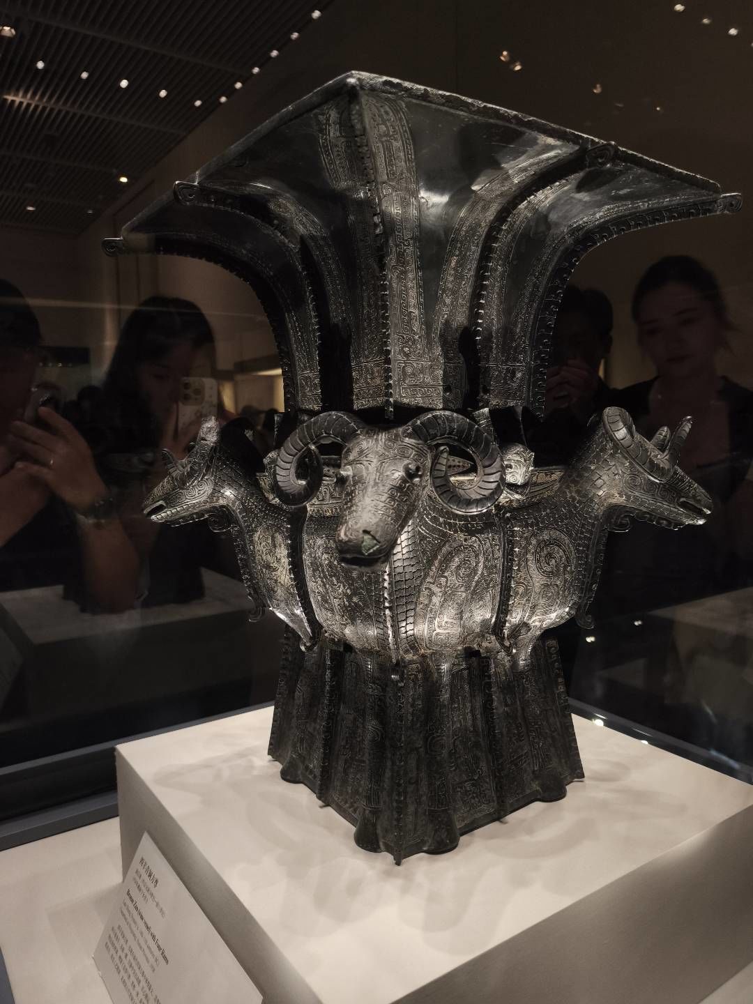 A Shang dynasty bronze ritual vessel (c. 1300 BCE) featuring four rams at the corners, considered the finest example of ancient Chinese bronze casting...