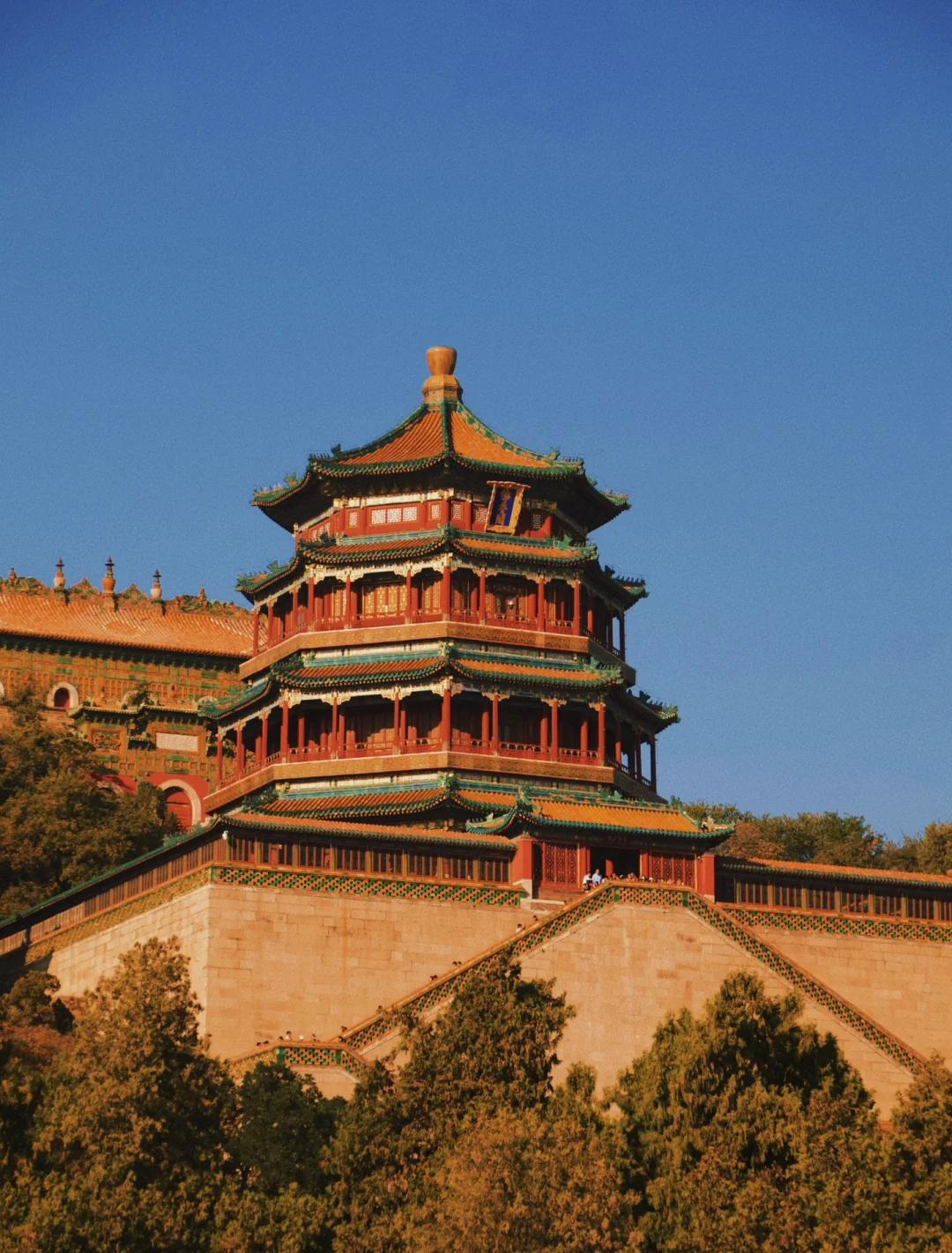 The iconic 41-meter octagonal tower perched atop Longevity Hill — the visual centerpiece of the entire Summer Palace. Climbing to the top rewards you with a panoramic view over Kunming Lake, the Western Hills, and on clear days, the distant Beijing skyline. Visible from almost everywhere in the park, it serves as your constant landmark.
