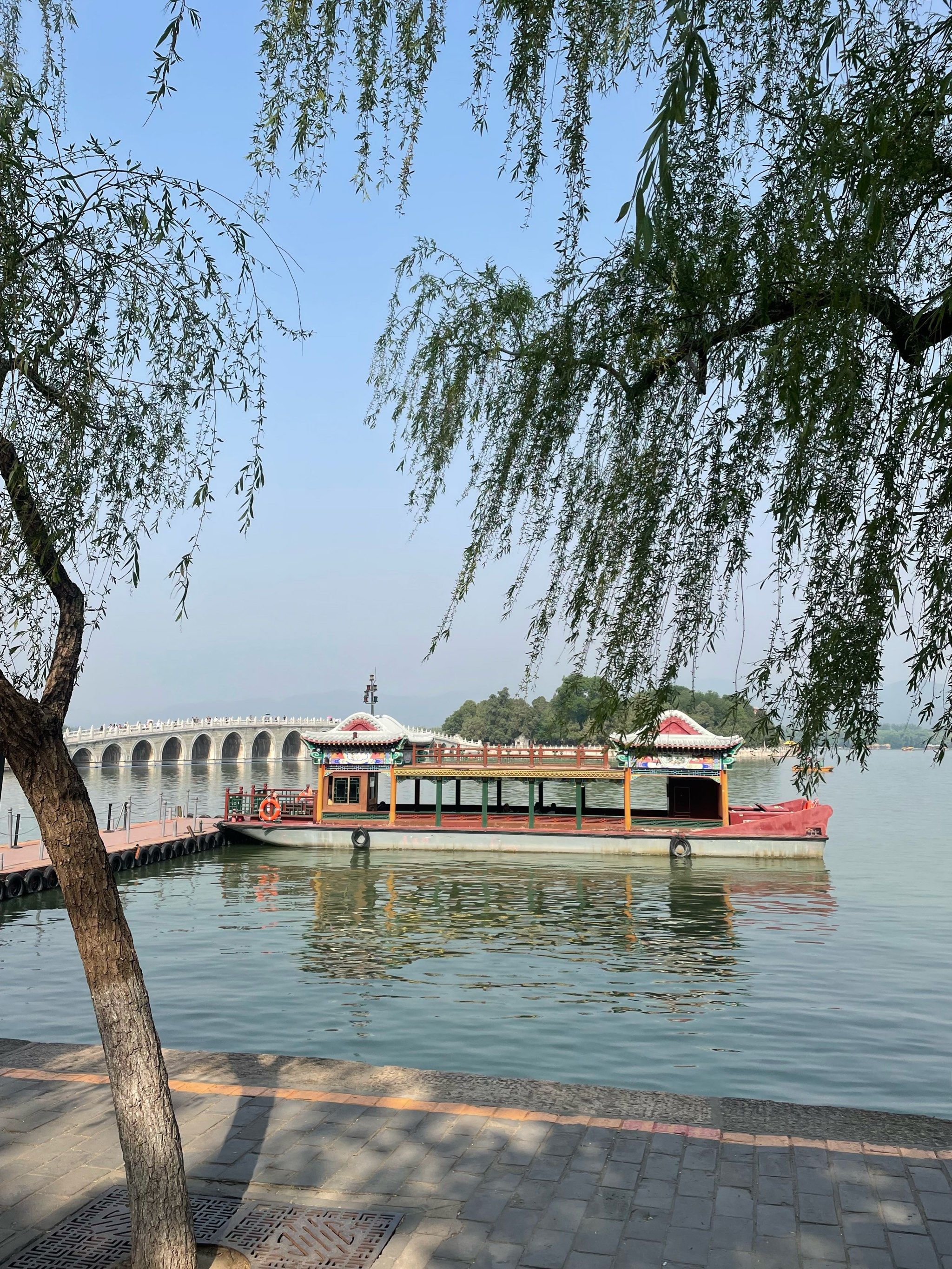 East bank of Kunming Lake near the Bronze Ox, looking at the 17-Arch Bridge