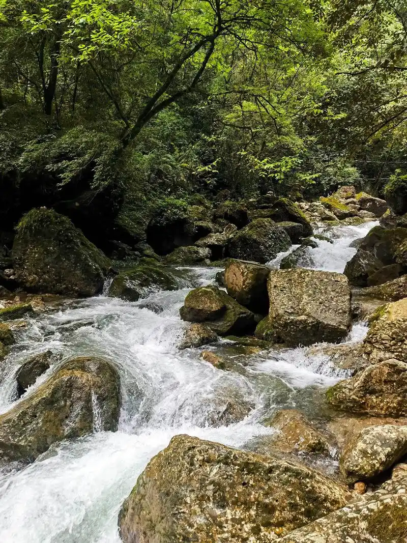 Most tourists only visit Front Mountain. Back Mountain has more dramatic natural scenery -- waterfalls, deep pools, suspension bridges, and original forest -- with a fraction of the crowds. Entrance is only 20 RMB. It's more physically demanding but far more rewarding for nature lovers.