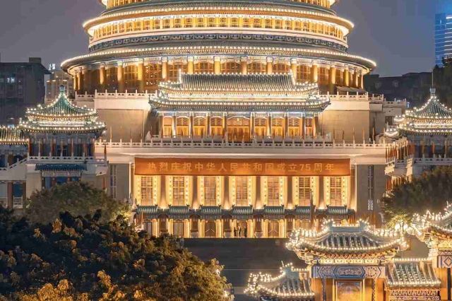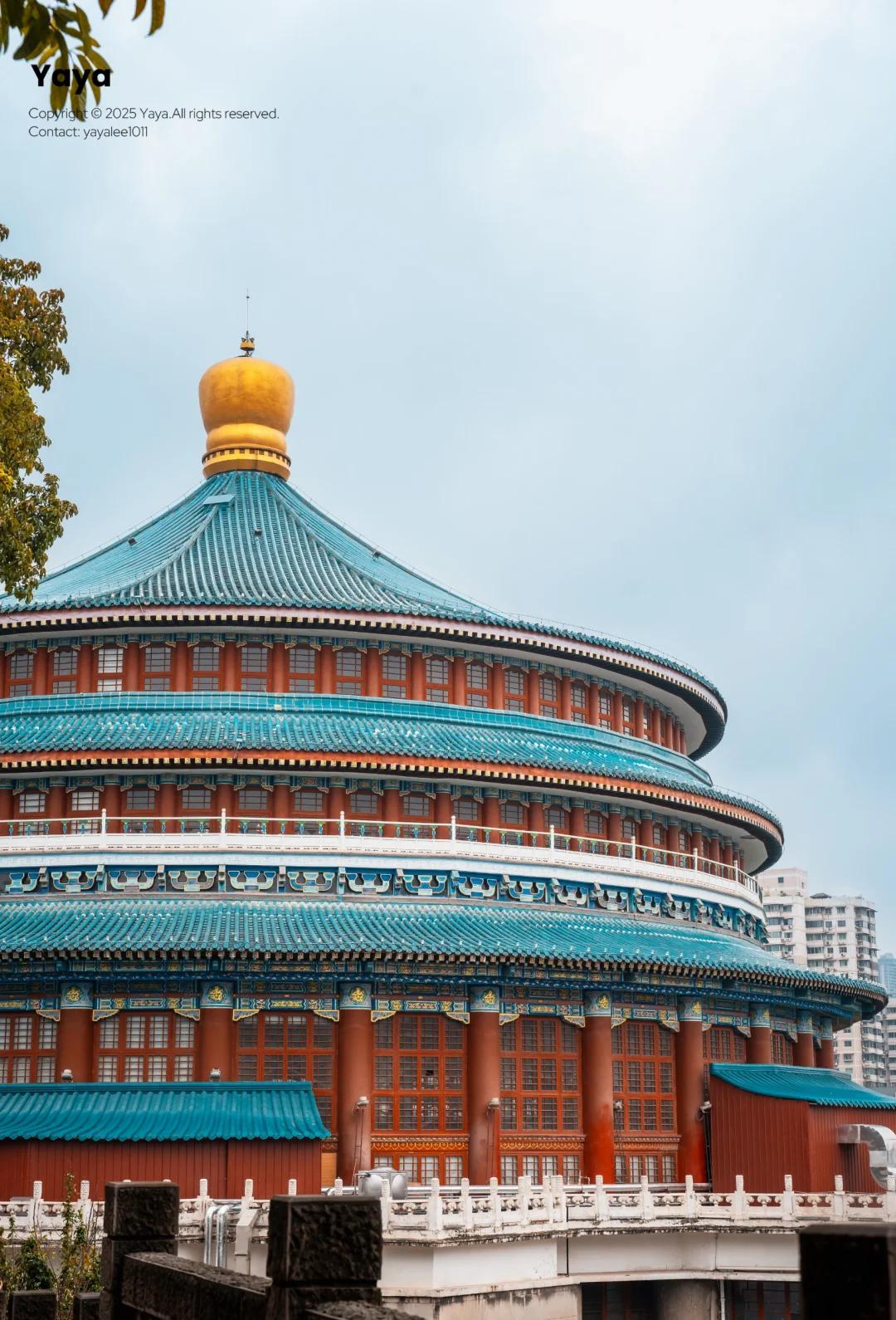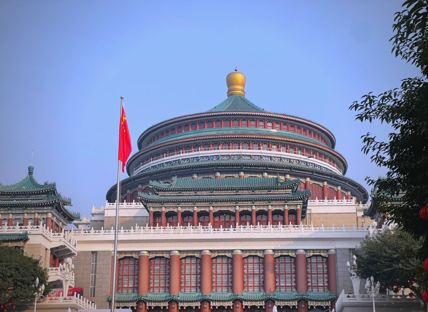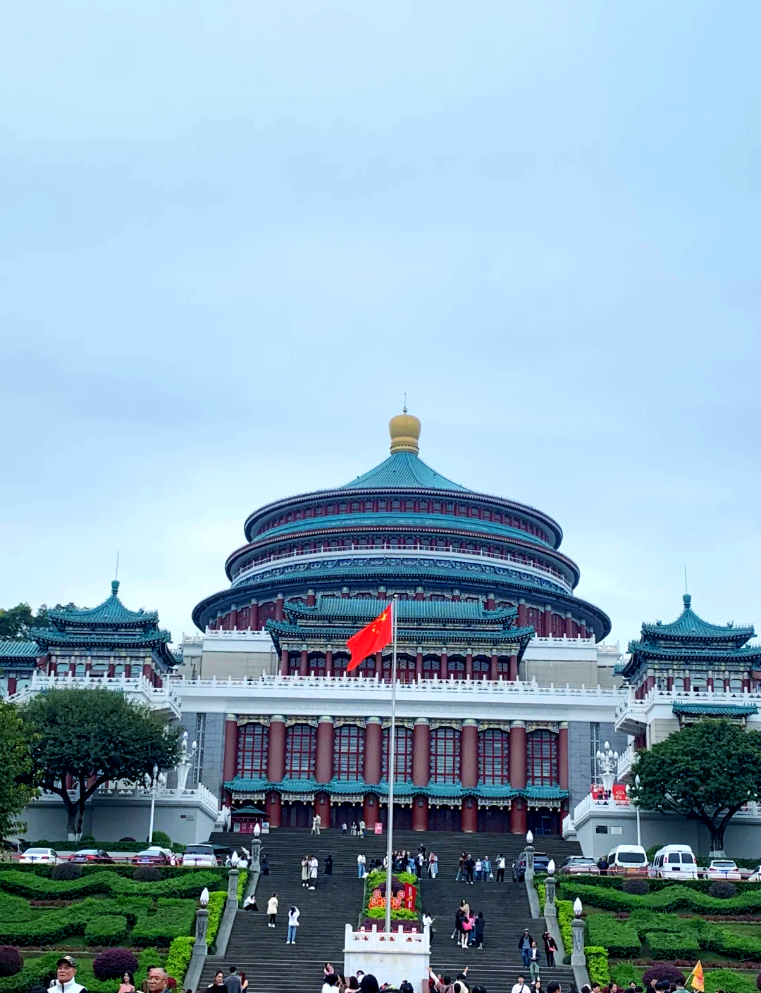 The 1954 structure is a masterpiece of Communist-era Chinese architecture — a green-tiled dome inspired by the Temple of Heaven, red columns, and a grand gate that echoes Tiananmen. It's one of China's most photographed government buildings and Chongqing's most recognizable landmark.