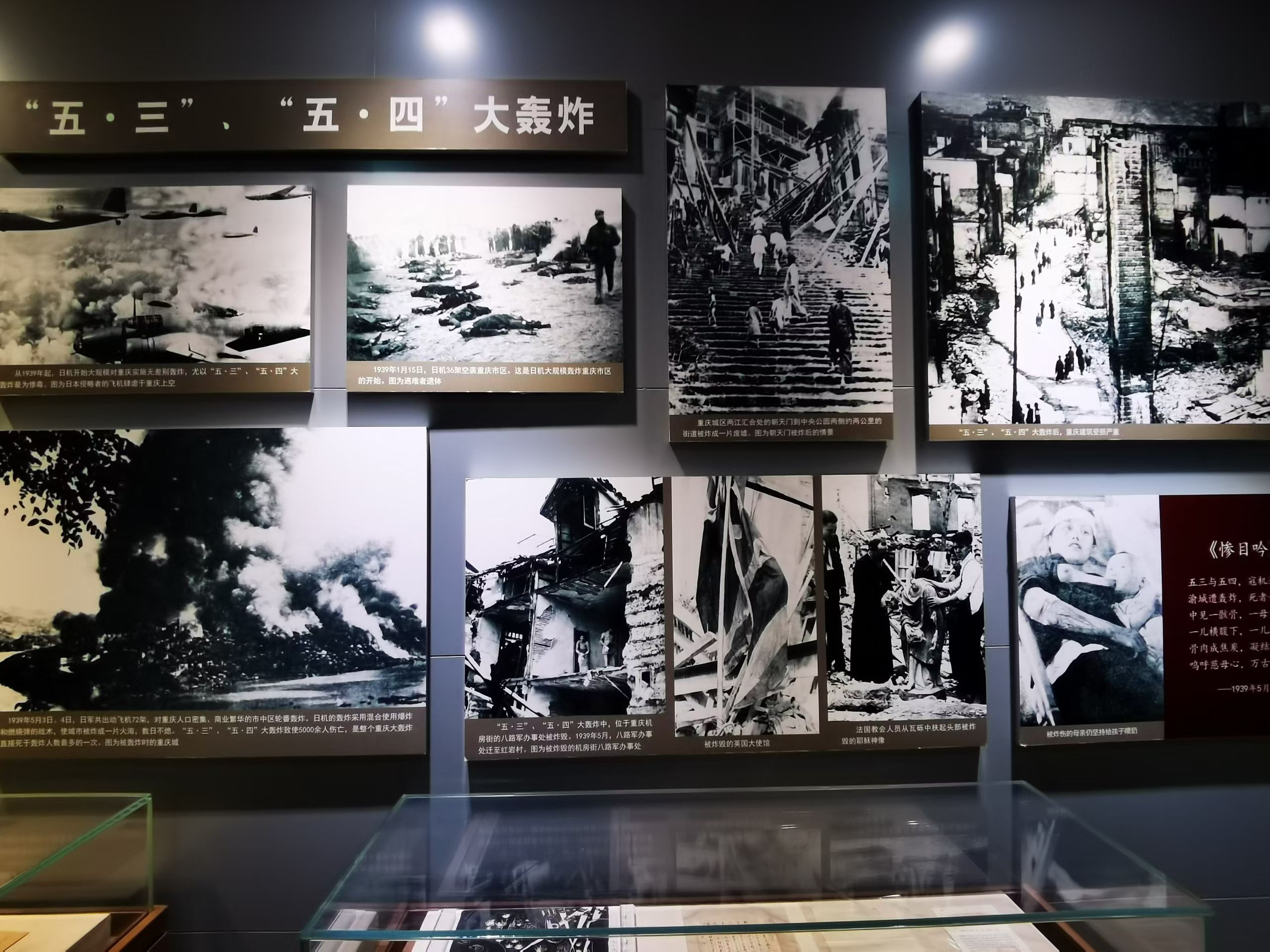 Third-floor exhibition covering Chongqing's role as China's wartime capital during WWII, with original documents, yellowed family letters, weapons, an...