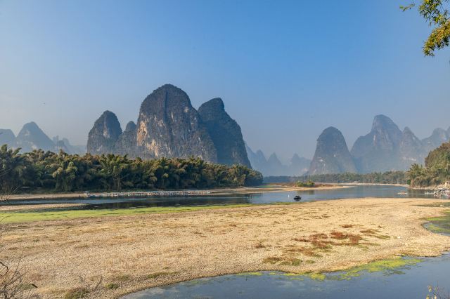 Half day (town, 20-yuan spot, bamboo raft ride on the Li River