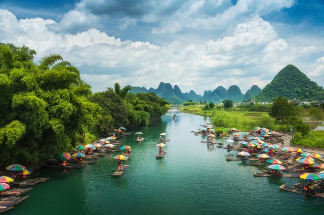 The Yulong River (meaning 'Dragon Encounter River') has been a lifeline for farming communities in the Yangshuo region for centuries. The ancient stone bridges that span it — some dating to the Song Dynasty (1123 AD) — were built to connect villages separated by the river and remain in use today. Bamboo rafting here started organically in 2001 when a local fisherman took a photographer out on his fishing raft for better photo angles. Today, over 300 raft operators work the river, all from local villages, using the same hand-poling technique their ancestors used for fishing. The prohibition on motorized boats is deliberate — the river is protected as a natural heritage site, preserving both the ecology and the timeless atmosphere that makes it special.