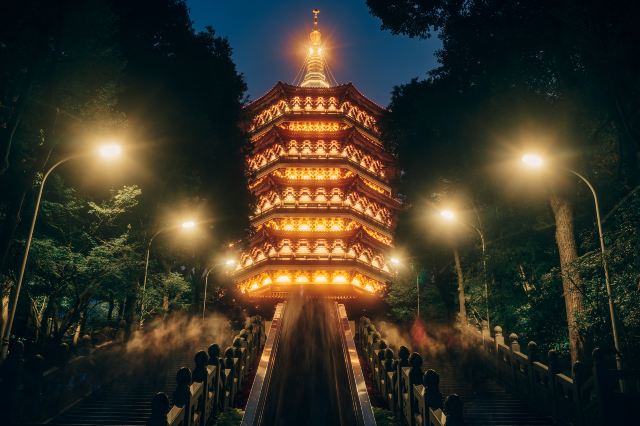 One of the legendary Ten Scenes of West Lake, this refers to the golden light of sunset illuminating the pagoda and reflecting off the lake. It has be...