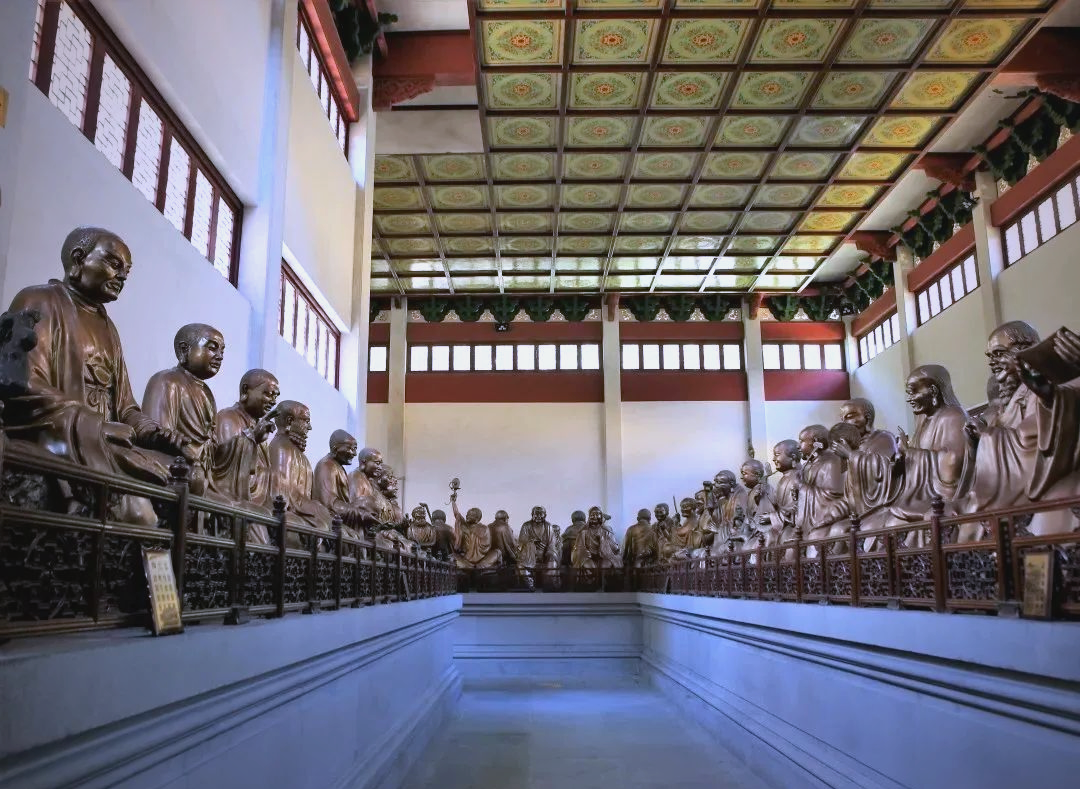 A hall containing 500 individually crafted bronze statues of Buddhist arhats (enlightened monks), each with a unique face, pose, and expression. You c...