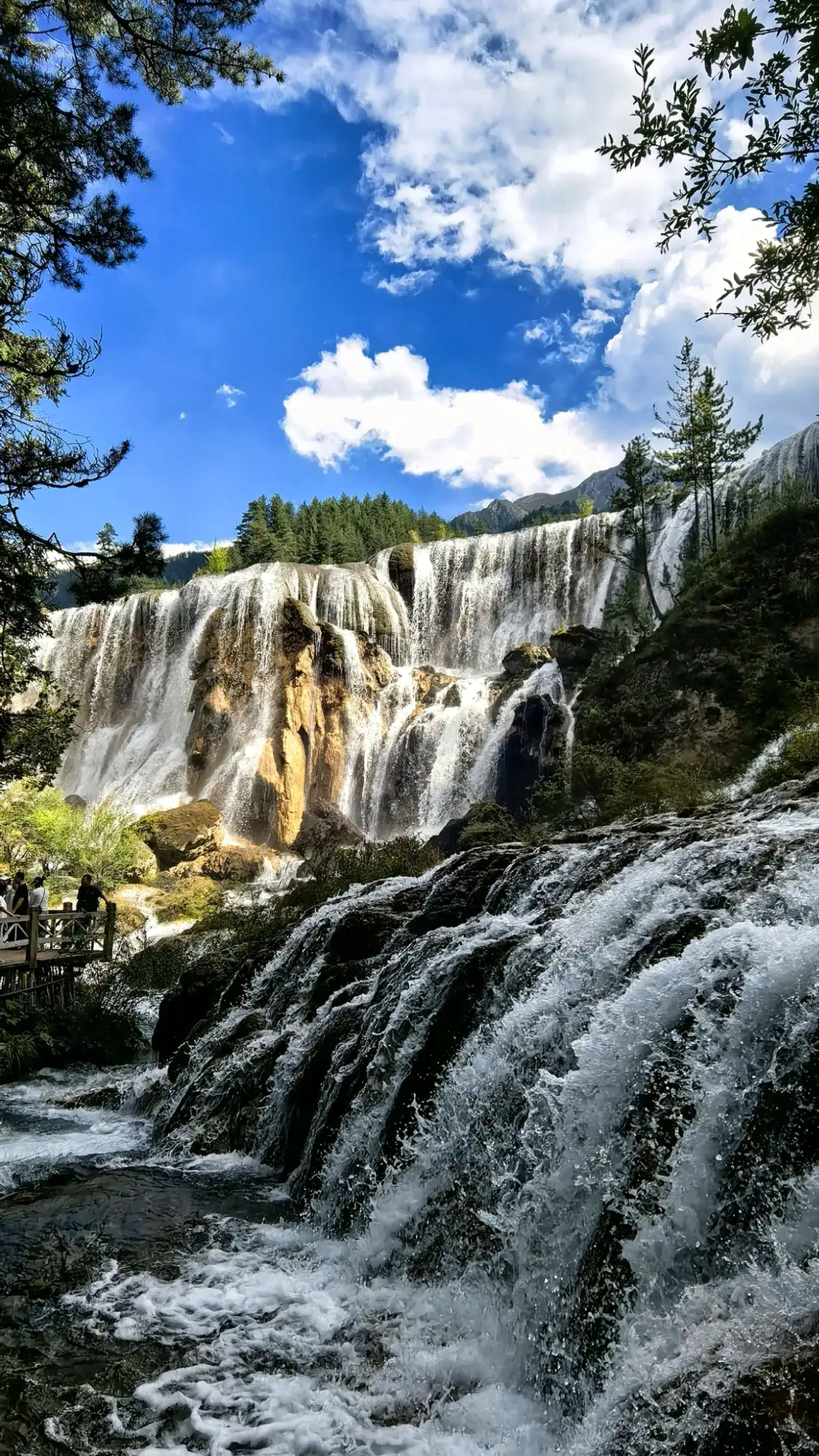 China's widest highland calcium-deposit waterfall at 320 meters across and 25 meters high — a massive curtain of water that thunders year-round and fr...