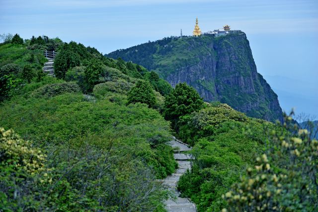 s (Day 1: bus to summit, explore Golden Summit and nearby temples, stay overnight on mountain; Day 2: descend via hiking through monkey zone and Qingyin Pavilion