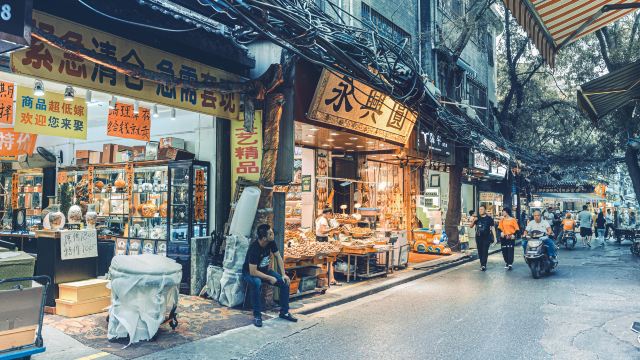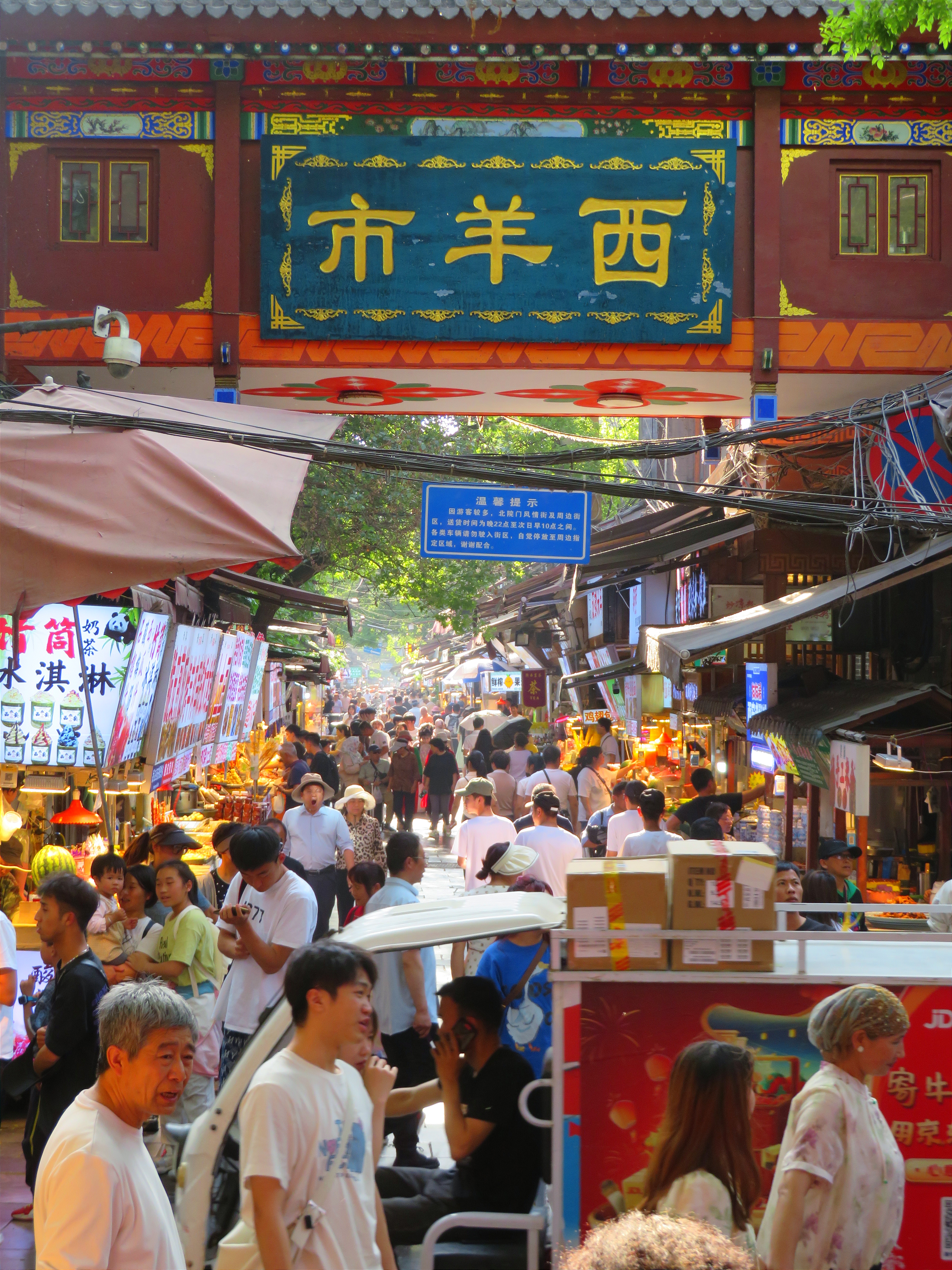 Weekend evenings and Chinese holidays — the main street becomes so packed that movement slows to a crawl