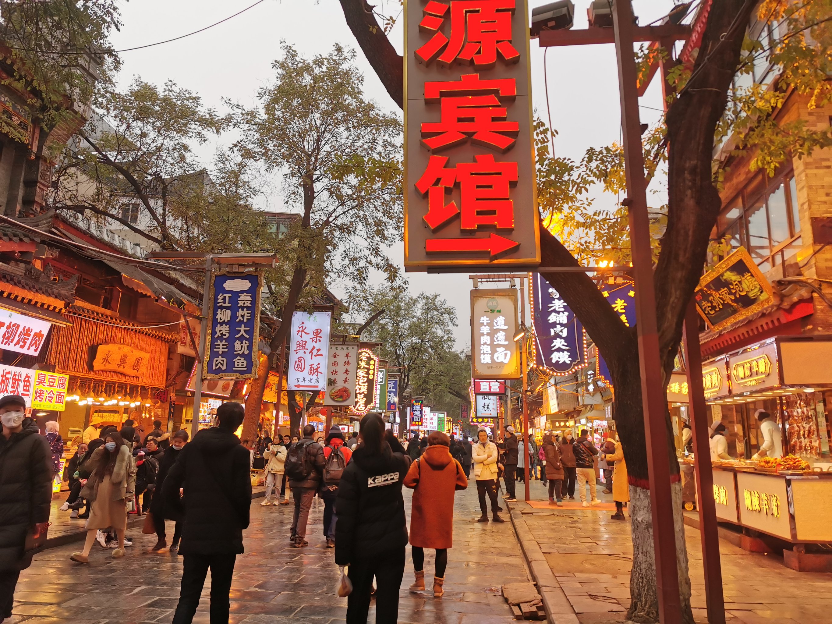 The same items cost 30-50% less on the side streets. Locals know this and eat at Dapiyuan, Xiyangshi, and Sajinqiao instead.